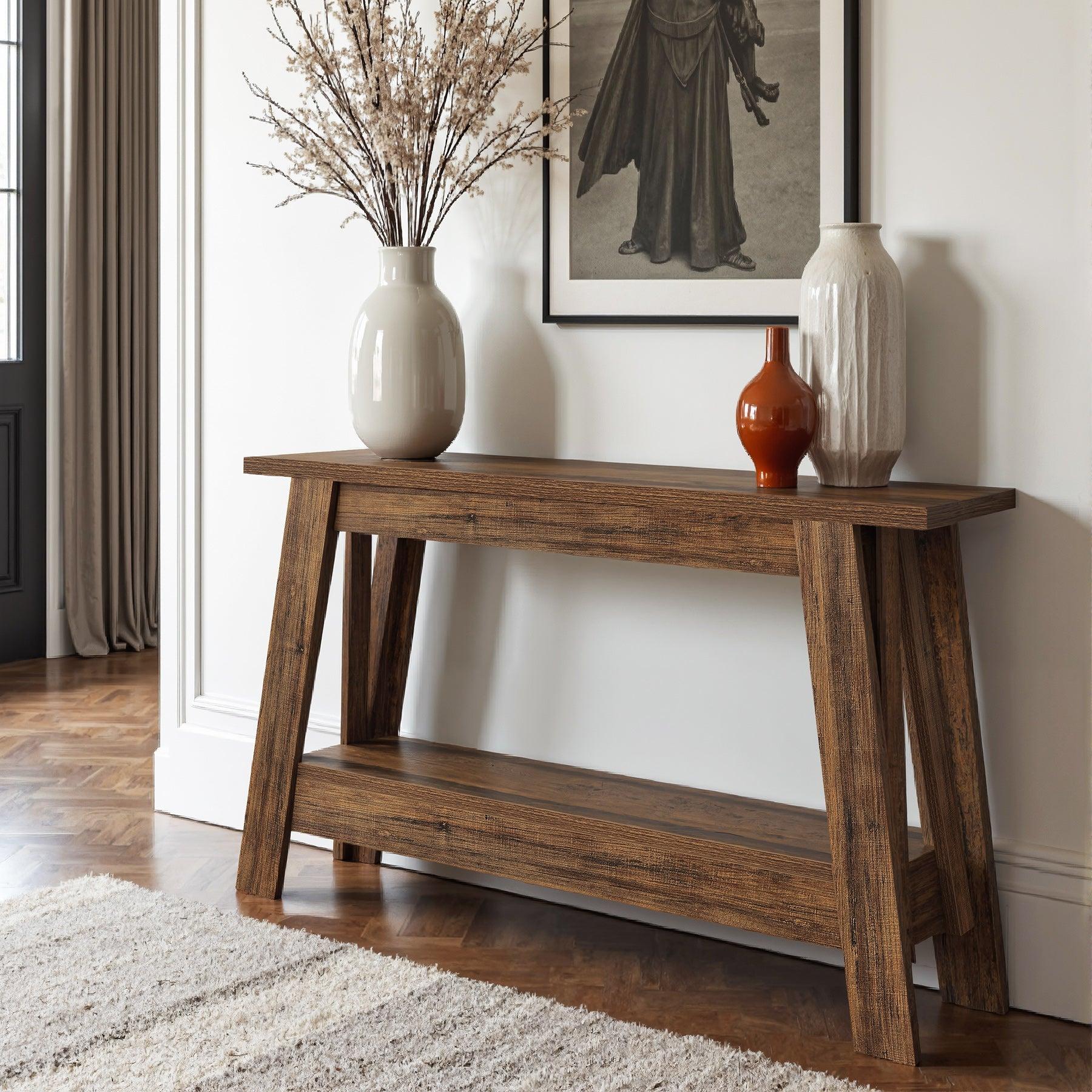 Modern Farmhouse Console Table – This versatile piece blends vintage charm with contemporary style, making it ideal for entryways or behind sofas. Its eye-catching design adds character while boosting your space’s functionality. ?