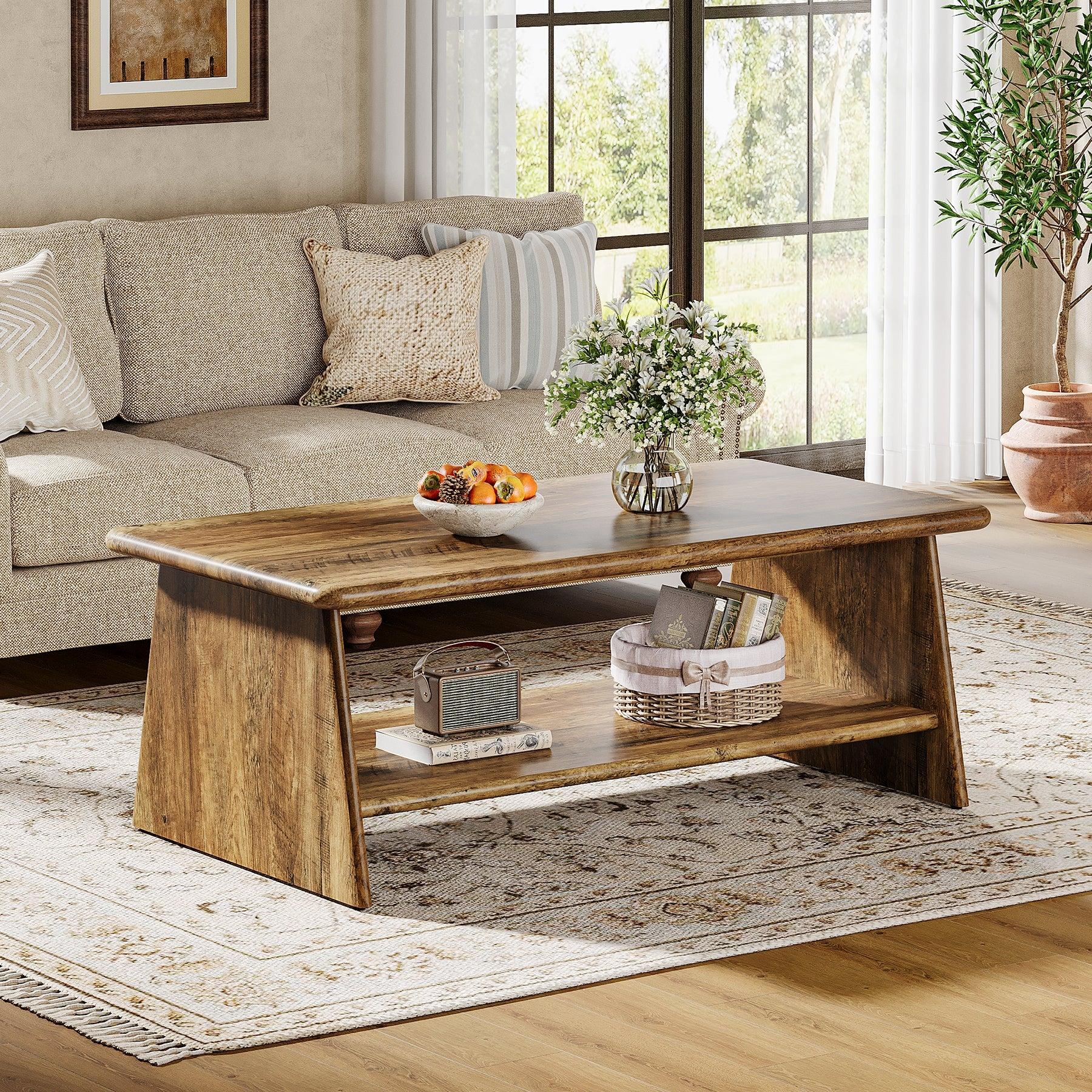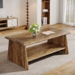 Traditional Elegance – This rectangular living room table featuring a clean-line design and a rich brown finish brings a timeless appeal to your home decor. The table’s open bottom shelf offers ample storage space for items like books and decorative boxes.