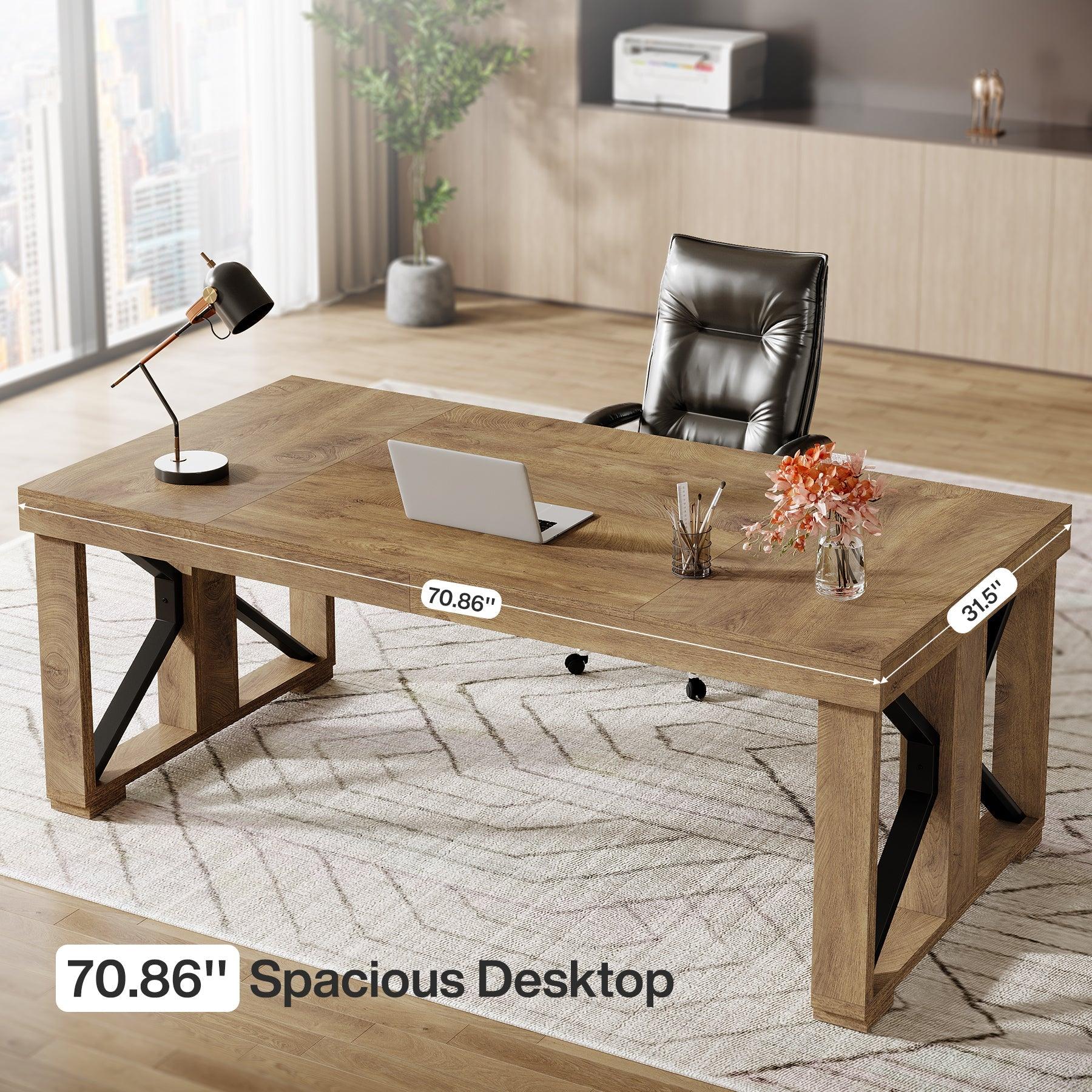 Expansive Workspace – With dimensions of 70.87″ W x 31.5″ D, this large office desk provides ample space for your computer, paperwork, and essential office supplies, all within arm’s reach. The generous 29.53″ of legroom guarantees comfortable usage without compromising productivity.