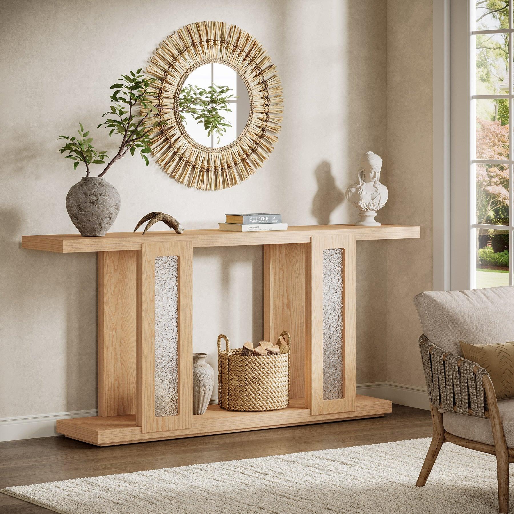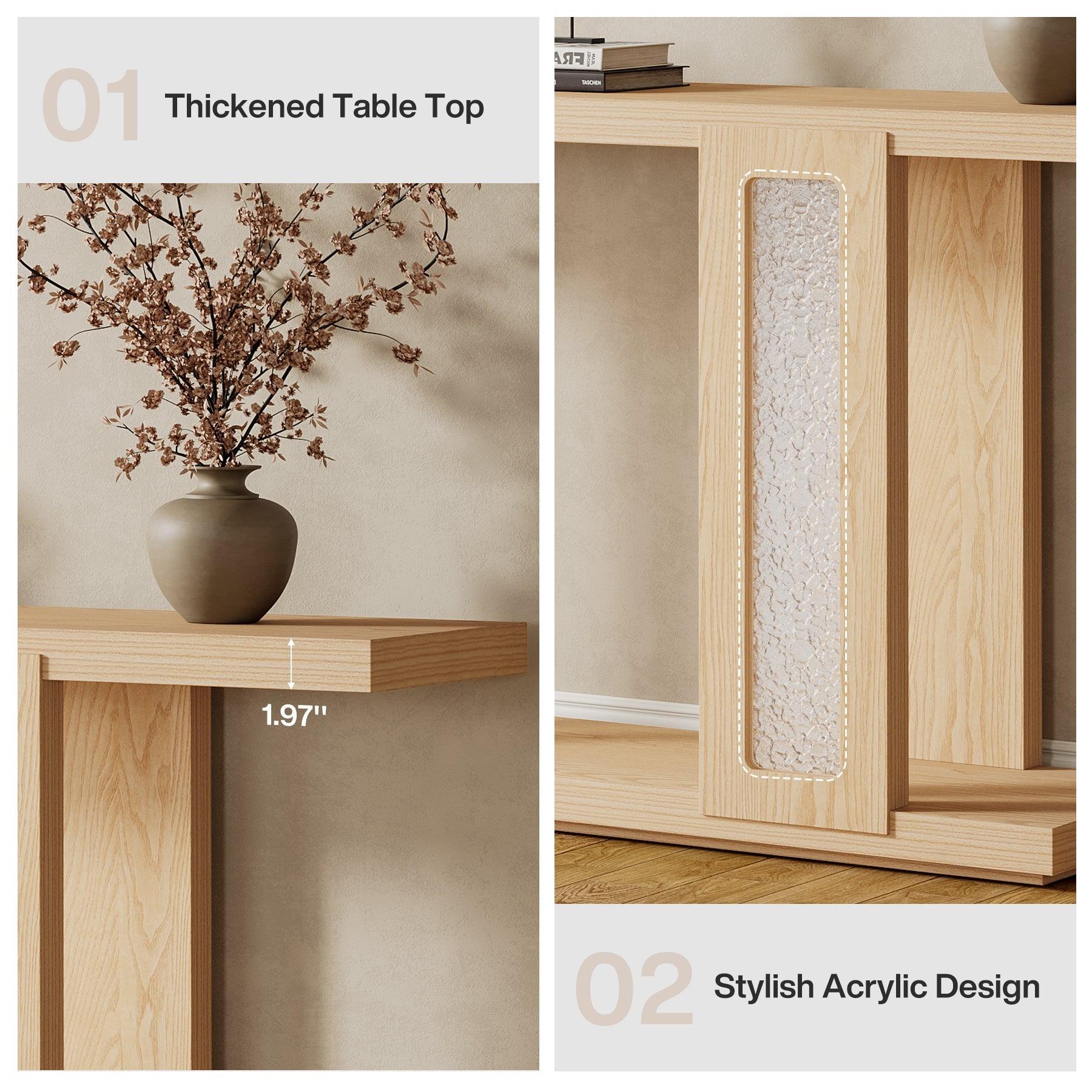 Elegant and Functional – Highlighted by its chic combination of light-toned wood and stylish acrylic legs, this console table serves as an eye-catching centerpiece. It’s an ideal complement to minimalist or boho decor, adding sophistication to entryways, living rooms, or behind your sofa.