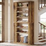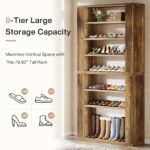 Spacious Shoe Storage – This 9-tier shoe rack comfortably holds 32-36 pairs of shoes in various sizes, making it ideal for everyday footwear organization or displaying collectible shoeboxes. The tall wooden design helps you keep your shoe collection neat and stylish.