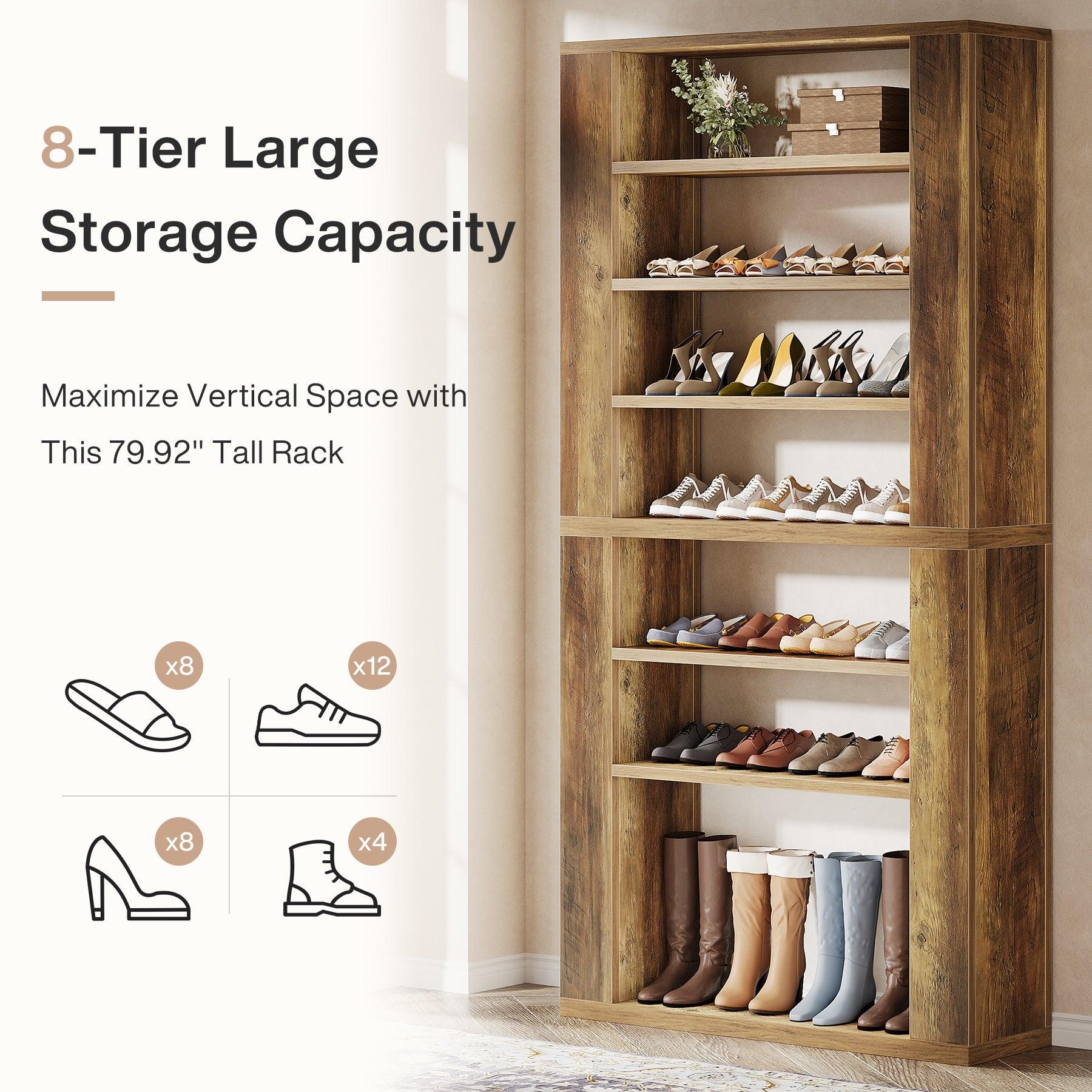 Customizable Shelf Heights – Featuring removable shelves, you can easily adjust the spacing to accommodate different shoe types from flip-flops to knee-high boots. Each shelf supports up to 33 pounds while maintaining perfect stability.