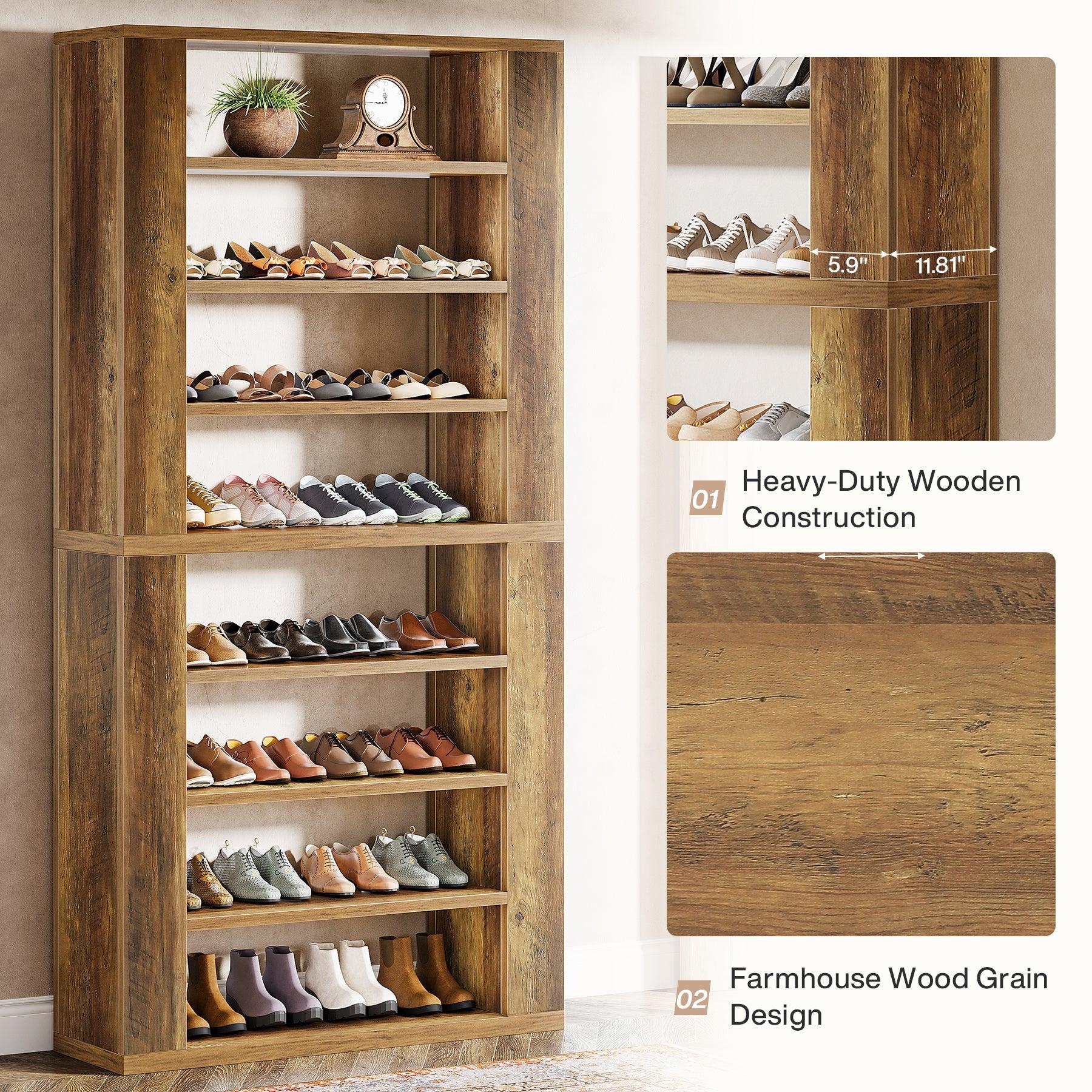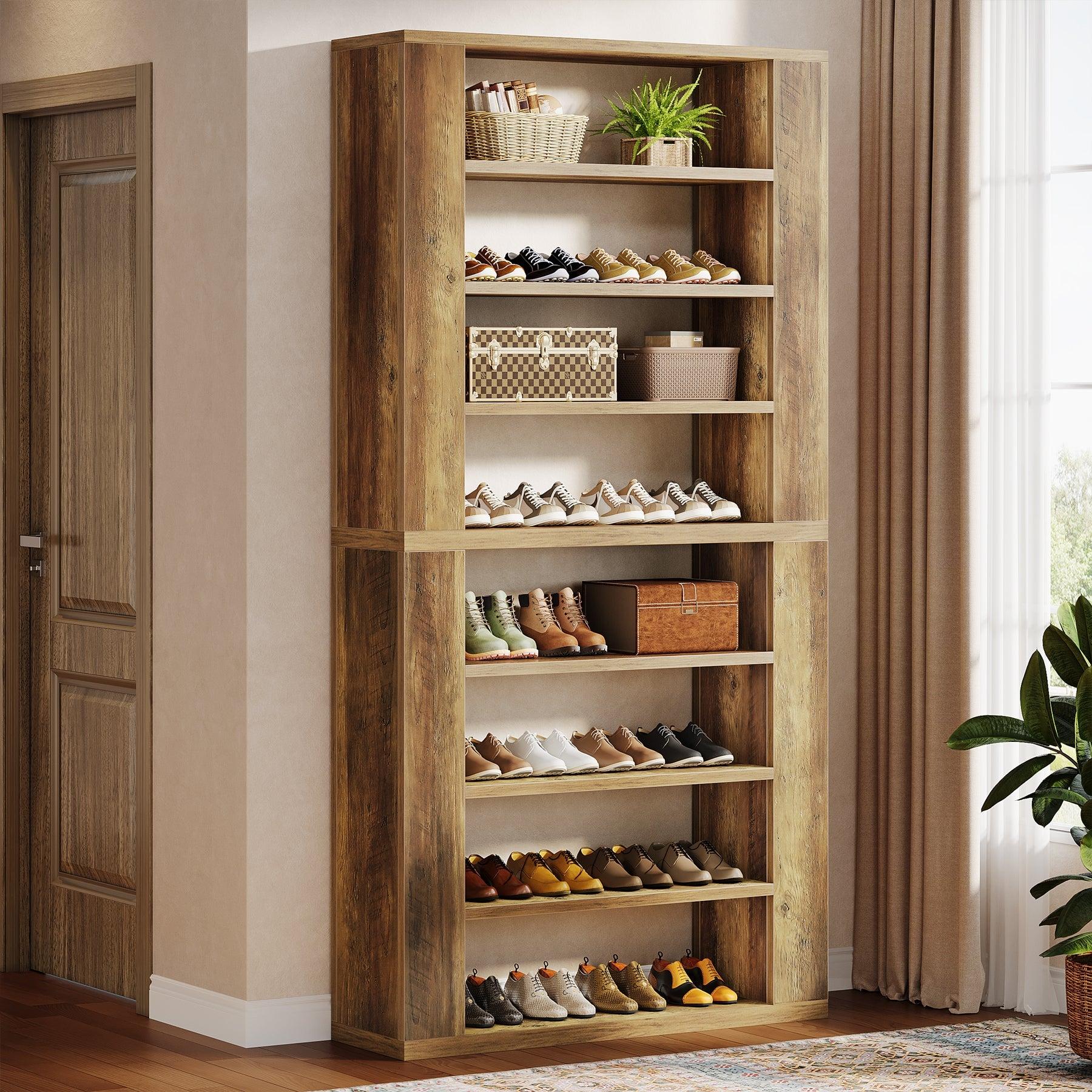Spacious Shoe Storage – This 9-tier shoe rack comfortably holds 32-36 pairs of shoes in various sizes, making it ideal for everyday footwear organization or displaying collectible shoeboxes. The tall wooden design helps you keep your shoe collection neat and stylish.
